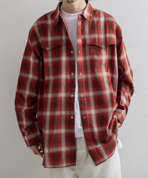 現代的にアップデートしたオンブレーチェックシャツ! ■DESIGN ウエスタンヨークと胸ポケットが一体型になったオンブレチェックシャツ。 ウエスタンシャツは元々カウボーイが着用する為に作られていたので細身のタイプが多いですが、こちらは都会的なビッグシルエットにアップデート。 肩の落ちたドロップショルダー&ゆったりとしたワイドな身幅がリラックスした雰囲気が漂います。 ■COORDINATE 西海岸ストリートの匂いがプンプン漂う一枚なので、濃紺デニムやチノパンとの相性の良さは言うまでもありません。 足元はブーツやスニーカーで合わせるスタイリングがおすすめです。 【GLOSTER/グロスター】 『男性であること、女性であること、日本人であること、人間であること。』 自由に生きる為に必要な洋服であり、着る人を主体と考えたプロダクトを提案します。 普遍的な洋服の礎であるワーク・ミリタリーをベースにエッセンスとして艶を加えて形にします。 洋服の原型を生かしながらもひねりの効いた素材を使い、ディテールは歴史の焼き増しではなく新たな価値観を創造します。 ※お取扱い上のご注意 アテンションタグを必ずご確認の上、着用又はお取り扱いください。 ※店頭及び屋外での撮影画像は、光の当たり具合で色味が違って見える場合があります。 ※商品画像に関しては出来る限り忠実に表示出来るよう努めておりますが、お客様がご利用のモニターの設定及び特性により、実際の商品と比較し色味に若干の誤差が生じる場合があります。 ※サイト上のカラー名と、お届け商品に記載されているカラー名が異なる場合がございます。 ◇商品のお気に入り登録◇ 【お気に入りに登録】を是非ご活用ください。 再入荷の通知や、ラスト1点の通知、セールの通知がいち早く届きます。 ◇ブランドのお気に入り登録◇ 新商品や再入荷など、いち早くブランドのお得情報が届きます。