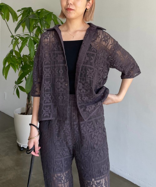 インドレースを使用した抜け感漂うシャツ 商品ポイント ・夏場のスタイリングに映える程よい透け感 ・レギュラーの襟付きシャツが今っぽい雰囲気に ・袖や身幅はオーバーすぎずどんなボトムにもマッチ ・手首が見える肘下の袖丈が抜け感をプラス ・比翼ボタンですっきり見え スタイリングポイント ・キャミやタンクに羽織って女性らしく着るのがおすすめ ・ワンピースに羽織ってワンポイントにも ・同素材のインドパネルレースパンツ(LEZ1021402A0001)とセットでも着用可能 ********************** 透け感:あり 裏地:なし 伸縮性:なし光沢感:なし ********************** ▼洗濯方法 手洗い可能 ※撮影場所やお使いのモニター環境により若干お色味が異なる場合がございます。 特にロケの撮影では明るく見える傾向にございます。 ※商品はサンプルで撮影をしております。若干の仕様が変更になる場合がございますので予めご了承の上ご注文くださいますようお願いいたします。 ▼商品のお気に入り登録 完売カラーの再入荷通知や、ラスト1点の通知、セールの通知も受け取ることができます。 ▼ブランドのお気に入り登録 新商品や再入荷など、いち早くブランドのお得な情報を受け取ることができます。