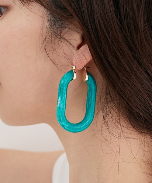 存在感のある涼しげピアスが登場!【デザイン・シルエット】ビビットな色味で気分もアガるカラーピアス。存在感のあるサイズ感で、シンプルなスタイリングのポイントとしてもおすすめです。ポストが一体型なのでキャッチを失くす心配もありません。チタンポストを使用しています。【カラー】これからの季節にぴったりなビビットカラーを揃えました。※画像の商品はサンプルです。 実際の商品と仕様、加工、サイズが若干異なる場合がございます。