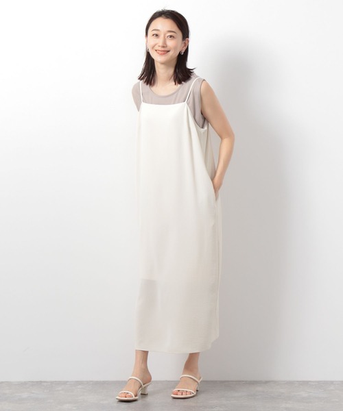 華奢なストラップが大人女性にぴったりなキャミワンピース 《デザイン》 今年大注目のキャミワンピース。華奢なストラップがフェミニンな印象で、大人っぽい雰囲気です。落ち感があり、体のラインを拾いにくく、なおかつ、すっきりとしたラインで着られます。 今年はキャミワンピースの上にジャケットやシャツを羽織り、程よく肌見せしたヌーディーな着こなしがおすすめです。 ※オフホワイト05は透け感があるため、インナーパンツのご着用がおすすめです ■セットアップでおすすめ■ 商品名:テーラードジャケットSS 商品コード:65983602 ブランド品番:281824 --------------------------------------------------- 【気になる商品はお気に入り登録がおすすめ!】 ・在庫残りわずか ・再入荷 ・セールの情報 などの通知を受け取ることができます。 ぜひ♡をクリックして、気になる商品を「お気に入り登録」してくださいね! 【ショップ・ブランドのお気に入り登録も!】 新商品や再入荷、セール、クーポンの配布など、いち早くお得な情報を受け取ることができます。 ---------------------------------------------------