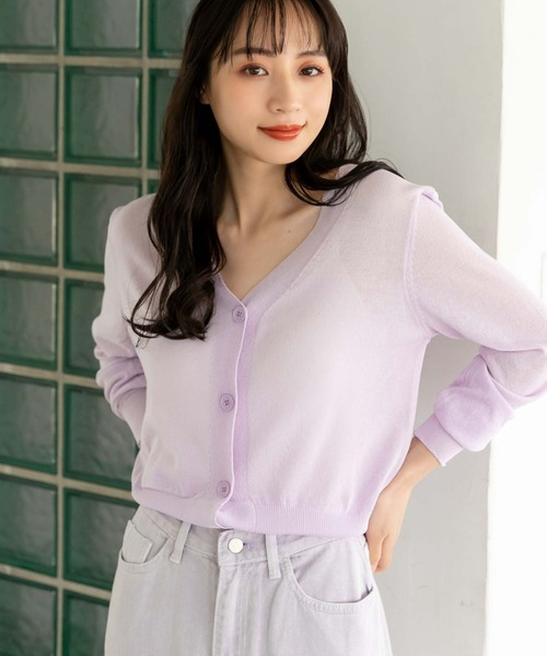 シアーな透け感が魅力のVネックカーディガン程よいシアー感が女性らしさを引き立ててくれるVネックカーディガン。羽織りとしてはもちろん、フロントのボタンを留めてプルオーバー風の着こなしもおすすめです。シンプルなデザインで合わせるボトムスを選ばず、様々なスタイリングに活躍するアイテムです。※撮影時のライティング、PCやスマートフォンの環境により写真の色味が実際の商品と異なって見える場合がございます。ご了承の上お買い求め下さいませ。※モデル着用画像は実際の色と多少異なる場合がございますのでマネキン画像をご確認ください。《 お知らせ 》▼商品のお気に入り登録お気に入りアイテムの値下げ・再入荷・在庫1点などの通知を受け取ることができます。▼ブランドのお気に入り登録新商品や再入荷、セール、クーポン配布などお得な情報を受け取ることができます。