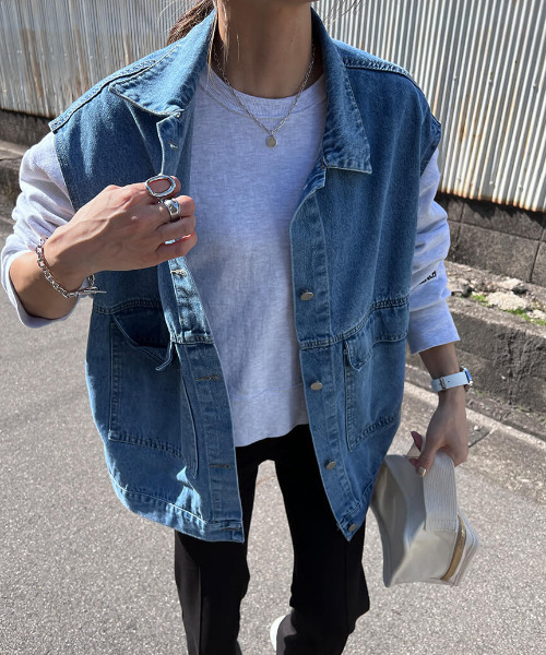 ♡人気インフルエンサーchiicaコラボアイテム♡トレンドのジレをデニム素材でジレジャケットは今季1枚は持っておきたいマストバイアイテム。デニムなのでラフに着用可能。ルーズなサイズ感もポイントです。パンツスタイルはもちろんスカートとも合わせやすく、様々なスタイリングをお楽しみいただけます。・・・・・・・・・・・・厚み:普通伸縮性:なし肌触り:かっちり裏地:なし透け感:なし・・・・・・・・・・・・▼▼ぜひ、お気に入りのご登録をお願いします▼▼♡をクリックして下さい。お気に入り登録をしていただきますと、再入荷通知や、ラスト1点の通知、セールの際の通知も受け取ることができます。【ATTENTION】 ※アイロンの際はあて布の使用をおすすめいたします。※商品画像につきましては、なるべく実物に近づけて撮影いたしておりますが、閲覧頂いておりますモニターによって、画像と実際の商品のお色に多少の差異が生じる場合が御座います。予めご了承下さい。※サイズにつきましては、すべて平台に平置きにし測定しております。商品によっては実際の製品上がりサイズと1~3㎝程、多少誤差が生じる場合がございます。 予めご了承ください。※ご注文いただいた予約商品のお届け時期の確認は、注文履歴ページより行えます。※他のキャンペーンにより、期間中に価格が変動する場合があります。※セールは予告なく終了させていただく場合もあります。