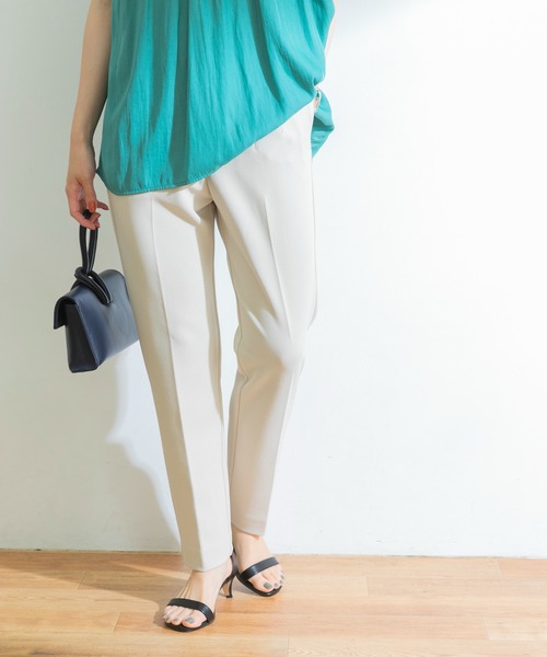 【1本あれば間違いなし!シーンレスで使える美シルエットパンツ】きれいめな雰囲気ながらもカットソー素材でラフに着られるテーパードパンツ。オンオフ問わずお使い頂ける、おすすめの1枚です。タックやハイウエスト、細身のテーパードシルエットと美脚見え要素がたっぷり詰まっており、腰回りもすっきり見せてくれる嬉しいデザイン。サイズも34からご用意しておりますので、小柄な方にもきれいにお召し頂けるアイテムです。COORDINATEブラウスやシャツと合わせればお仕事スタイルに。カジュアルなロゴTeeと合わせて大人カジュアルなスタイルもおすすめです。-----------------------------《スタッフ着用コメント》[スタッフA]年齢 : 20代後半, 身長 : 154cm, 体型 : 小柄普段の着用サイズ : 36パーソナルカラー : イエローベース 秋タイプ【着用カラー/サイズ】NAVY/36【サイズ感】サイズ36でぴったりでした。ゆとりを持って合わせたい場合は1サイズ上げても良いかと思います。【素材感】脚にフィットする感じでしたが、やや伸縮性があるので動きやすかったです。-----------------------------※この商品(NAVY)は、実際はブラックに近い色味です。※この商品は、直射日光や蛍光灯に長時間あたると変色するおそれがあります。ご着用や保管の際は、充分にご注意ください。※濃色の商品は、色移りすることがあります。汗をかいたり、雨や水に濡れたままの長時間放置は避けてください。※商品画像は、光の当たり具合やパソコンなどの閲覧環境により、実際の色味と異なって見える場合がございます。予めご了承ください。※商品の色味の目安は、商品単体の画像をご参照ください。▼お気に入り登録のおすすめ▼お気に入り登録商品は、マイページにて現在の価格情報や在庫状況の確認が可能です。お買い物リストの管理に是非ご利用下さい。-----------------------------透け感:なし伸縮性:ややあり裏地:なし光沢:なしポケット:あり-----------------------------