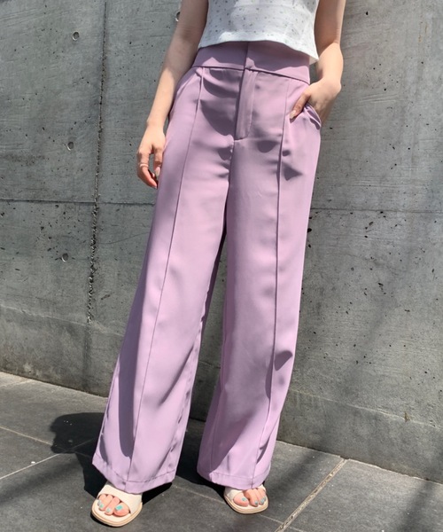 センタープレスでスタイルアップなカラーパンツ ■デザイン ・ワイドシルエットとセンターラインがきれいなシルエットの脚長見えパンツ。 ・リラックスムードな雰囲気に、ハイウエストで女性らしい印象になります。 ・ウエスト後ろゴムで履き心地も楽です。 ・今年らしいカラー展開で、いつものコーデが一気に旬見えに。 ■カラー ・オフホワイト/ブラック/ラベンダー/イエローグリーンの4色展開 ■スタイリング ・フリルブラウスやレースブラウスなど甘めなトップスと相性抜群です。 ・Tシャツと合わせたシンプルコーデもこなれ感が出てオススメ。 ・足元は厚底サンダルやスニーカーでさらにスタイルUPも◎ ■point フルレングス、ハイウエスト、ベーシック、白パンツ、着まわし、着回し、大学生コーデ、通勤通学、オフィスカジュアル、プチプラ、春服、春コーデ、夏服、夏コーデ ----------------------------- 裏地:オフホワイトのみ、あり 光沢感:なし 透け感:なし 伸縮性:なし ----------------------------- model:166cm ※着用、お取り扱いの際は、商品についている品質表示とアテンションタグを必ずご確認下さい。 ※ご覧のモニター環境や撮影環境により実際の商品と多少色味が異なって見える場合がございます。 ご理解の程よろしくお願いいたします。 ■お気に入り登録のおすすめ【気になるアイテムを登録】ハートをクリックしてお気に入りに登録すると完売カラーの再入荷やラスト1点の通知、セールの通知を受けとることができます。 【ブランドを登録】新商品や再入荷、セール通知など、いち早くブランドの情報を受けとることができます。