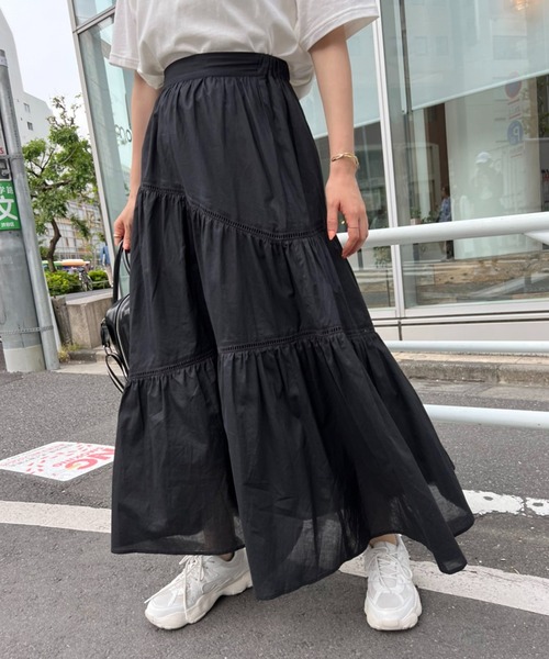 NICECLAUP 2022 early summer Collection 適度なハリ感のある生地を使用したティアードスカート!斜めに入った切り替えがモードな印象を与えてくれますティアードの切り替え部分には、ハシゴレースを使いアクセントに!カラーは定番で使いやすいオフホワイト、ブラックの他に、春夏らしいイエロー、グリーンストライプのカラーを入れた4色展開!シンプルなトップスでも華やかにしてくれるアイテムなので、コーデにメリハリを付けたい方にオススメです!■オススメコーディネートボリューム感のあるシルエットなので、トップスは少しコンパクトなアイテムで合わせるのがオススメです!ショート丈TシャツやロンT合わせはもちろん、シアートップスや、ジレ合わせも今年らしくおすすめです◎足元もスニーカーから、サンダル、ショートブーツまで小物でコーデの印象も一気に変わるので着回しも抜群なアイテムです!-------------裏地:あり伸縮性:無し生地の厚さ:普通生地の重さ:普通-------------【骨格タイプ】≪骨格ストレート全体的に体にメリハリがある 体型の方が多いタイプ。腰位置、バスト位置も高く厚みがあるのが特徴です。・骨格ウェーブ体が薄めで鎖骨が細く首が長め、腰位置が低めでバランスの重心が下半身にあり上半身は華奢な印象があるのが特徴です。・骨格ナチュラル全体的に重心の偏りがなく、手足長めの方が多いタイプ。肩や手首、関節などの骨がしっかり出るのが特徴です。※サンプルでの撮影のため、実際のものと仕様や色が異なる場合があります。※室内、室外での撮影のため実際より明るく映っていたり、暗く映っていたりする場合がございます。※品質表示を必ずご確認下さい。【商品のお気に入り登録】完売カラーの再入荷や、ラスト1点のお知らせ、セールの通知を受け取ることができます。【ブランドのお気に入り登録】新作入荷や再入荷情報など、ブランドの情報をいち早くお届けします。ぜひご登録ください♪