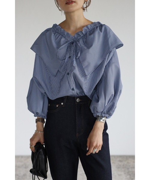 夏コーデの定番、ストライプブラウスでスタイリッシュに《スタイリング》すっきりとしたパンツにインスタイルでバランスを取ったコーディネートがおすすめです。デコルテラインもすっきりと見せてくれるので、アクセサリーなど小物合わせも◎マリンスタイルで夏らしくおしゃれに着こなせます。《ディテール》細線のストライブ柄で甘すぎず大人な印象に見せてくれるデザイン。袖はゴムでボリューム感を出してくれます。二の腕を隠してくれるのも嬉しいアイテムです。リボンでデコルテラインの広さを調節できます。《ファブリック》肌触りの良いさらっとした素材------------------------透け感/なし光沢感/なし伸縮性/なし裏地/なし厚み/普通------------------------ストライプシャツ/オフィス/オフィスカジュアル/大人/オトナ/夏服/夏コーデ/きれいめ/春/日除け【Information】◆《お気に入り登録》がオススメ◆・「商品のお気に入り登録」で再入荷通知や、ラストの通知、セール通知も受け取ることが出来ます。・「ブランドのお気に入り登録」で新商品や再入荷など、お得な情報を受け取ることが出来ます。※撮影時のライティング、ご覧になっているモニター・PC環境により、実際の商品と色味が異なって見える場合がございます。予めご了承をお願い致します。※モデル着用画像は実際の色と多少異なる場合がございますのでトルソー画像をご確認ください。