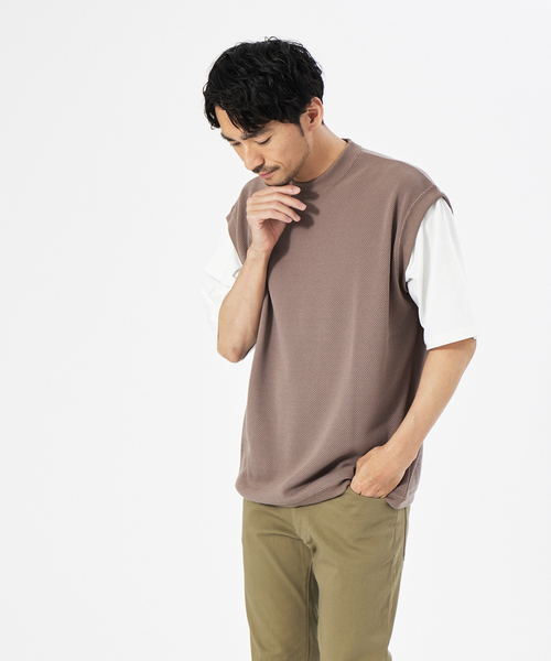 嬉しいユニセックスカラー展開【素材】速乾性のある鹿の子ポリエステル素材。凹凸感があるため、肌への接地面が少なく、通気性も良いので長期間使用できる素材です。【デザイン】ミニマルな印象のルーズシルエットの鹿の子ベストTシャツ。シルエットは、肩幅や身幅にゆとりを持たせた今シーズンのルーズなフィット。しっかりと凹凸が浮き出た鹿の子が、シンプルなデザインに表情をあたえます。対応シーズンが長く、なお且つイージーケアなのも嬉しいポイント。【コーディネート】カジュアルな着こなしは勿論、キレイ目スタイルでもはまります。目を惹くスモーキーなトレンドカラーは、旬なスタイリングにもしっかり映える汎用性も兼ね備えています。