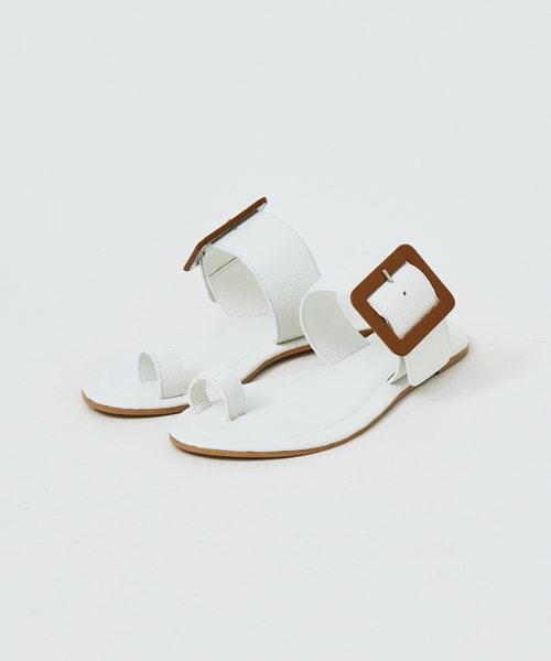 ワンポイントになる大きめのベルトが魅力的なサンダル。 クッションインソールがフラットサンダルでも衝撃を軽減させ、長時間歩いても疲れにくい仕様にしております。 シボ加工のレザーがカジュアルになりすぎず、大人っぽく纏めてくれます。 ※一部撮影画像は、光の当たり具合で色味が違って見える場合があります。商品の色味は白背景のスタジオ撮影画像をご参照ください。 ※画像の商品はサンプルです。実際の商品と仕様、加工が若干異なる場合がございます。 ※輸送中に傷が付くことを予防する為にソールに保護シートが張られている商品がございます。保護シートが張られたままご使用になると滑りやすく危険でございますので必ず剥がしてからご使用ください。また、全ての商品に保護シートが張られている訳ではございませんのでご了承ください。