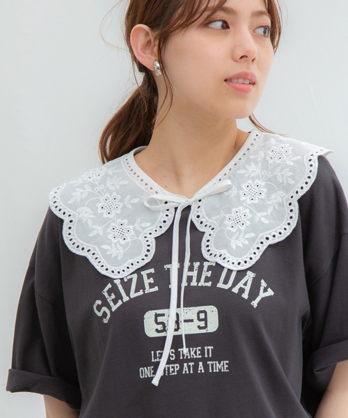 普段のコーデを格上げしてくれる、便利な付け衿。 存在感のある花柄刺繍入りレースがフェミニンなデザイン。 フロントでリボンを結ぶ簡単タイプで、可愛さも◎ シンプルなワンピースやカーディガンなどに合わせるだけで、手軽に今年らし い上品スタイルが完成します。 品番:585-117-7886