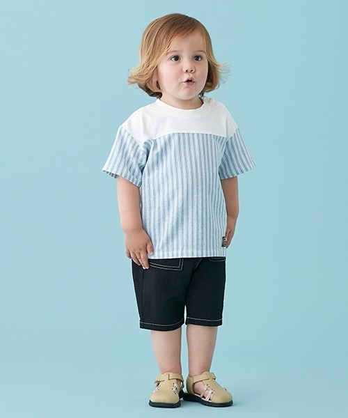 シボ感が特徴的なサッカー素材でさわやかさをプラスするハーフパンツです。カラーによって無地とヒッコリーの2パターンを展開。アジャスターゴムを備えたウエストや裾には配色ステッチをほどこし、見た目にアクセントを加えました。内側にはお名前を記入できるタグつき。【おすすめの着用時期は春夏シーズン】【透け感】透けない【生地の厚さ】普通【伸縮性】なし【裏地】なし【ポケット】あり【アジャスター】あり
