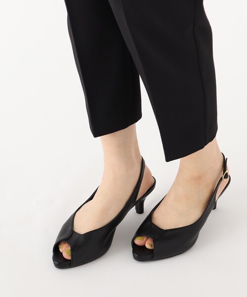 スッキリとしたデザインが上品なオープントゥバックストラップサンダル。 【デザイン】 ストーム入りのオープントゥバックストラップサンダル。 ヒール高は約6センチですが、ストームが約1センチあるので傾斜はおおよそ5センチと高さを感じにくく、スタイルアップも期待できるアイテム。 甲のデザインをVカットにしているので、足元がキレイに見えるのもポイントです。 シンプルなデザインなのでスタイリングに合わせやすくON/OFF活躍出来そう。 かかとの調整はバックルで簡単に行っていただけます。 【素材】 表面感のあるスムースフェイクレザーを使用し、上品に仕上げています。 店舗へのお問い合わせ商品番号:C59-24006 ●製品寸法: 01(22.5~23.0cm):ヒール高6.5cm 02(23.5~24.0cm):ヒール高6.5cm 03(24.0~24.5cm):ヒール高6.5cm 備考:重量:03(24.0~24.5cm)片足約195g(サンプル重量)