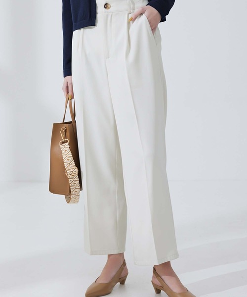 センタープレスがキレイ見えを叶えるワイドパンツとろみ感のあるツイル生地を使用したワイドパンツ。ストンと落ちるシルエットに、センタープレスのデザインがキレイ見えを叶えてくれます。ウエストはバックゴム仕様でフィット感が良く、トップスをインした着こなしもスマートに決まるアイテムです。※撮影時のライティング、PCやスマートフォンの環境により写真の色味が実際の商品と異なって見える場合がございます。ご了承の上お買い求め下さいませ。※モデル着用画像は実際の色と多少異なる場合がございますのでマネキン画像をご確認ください。《 お知らせ 》▼商品のお気に入り登録お気に入りアイテムの値下げ・再入荷・在庫1点などの通知を受け取ることができます。▼ブランドのお気に入り登録新商品や再入荷、セール、クーポン配布などお得な情報を受け取ることができます。