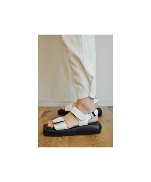 トレンドのスクエアトゥサンダル。 ボリュームソールなのでワイドなボトムスにも合わせやすくコーディネートの幅も広がります。 中底にはクッションをふんだんに使用し、ふかふかの履き心地です。 マジックテープでワイズの調節も可能なので、幅広、幅狭の方にもお勧め。 色違いにブラックあり。 ●商品一覧トップページはこちら↓ http://urx3.nu/LHHy
