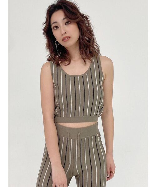 【商品コメント】トレンドのプリーツ見えマルチストライプの編み柄を、GYDA(ジェイダ)らしくタンクトップに落とし込んだアイテムです。 ストライプカラーが2色の配色になっていて、グランドとストライプ部分が凸凹になっている表面の生地が高級感もあって可愛いです。 【コーデ】 マルチストライプ ニットフレアパンツ(ブランド品番:072240728701)とのセットアップでのスタイリングがオススメです。 ※着用画像はフラッシュの加減で実際の製品と色味等が異なる場合がございますので、生地のズームアップ画像をご確認ください。 ※ご利用の端末画面の設定により実際の商品と色味が異なる場合がございます。 【商品特徴】 透け感:なし 伸縮性:あり 生地の厚さ:普通 サイズ感:細身 裏地:なし ポケット:なし 【 お買いものにおすすめの便利機能! 】 ♥商品のお気に入り登録 完売カラーの再入荷時や、ラスト1点の時、セール開始時にお知らせします。 ♥ブランドのお気に入り登録 新商品や再入荷、セール情報など、いち早くブランドのお得な情報を受け取ることができます。 ぜひご活用ください!