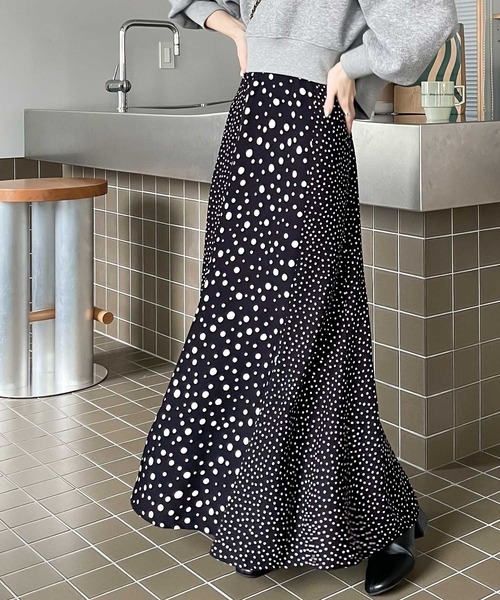 キレイ魅え叶う。 てろん素材の美形セミフレアスカート。 重く見えがちなブラックも動きのあるドレープで軽やかに。 柔らかな落ち感のある1枚。 ■point ・スタイルアップ◎ ・6枚パネル ・程よいセミフレア ■detail 程よいセミフレアシルエットのマキシスカート。 6枚パネル切替えだから歩く度、美しく揺れ動きます。 トレンドのマルチドット柄と無地ブラックの2色をご用意。 引き締め効果のあるブラックカラーと、 セミフレアシルエットで美脚効果も狙えます。 ■fabric 薄手のさらりとした軽い素材。 夏でも涼しく着ていただけます。 …………………… 透け感:若干 厚さ:薄手 伸縮性:なし 裏地:なし ポケット:なし 洗濯方法:手洗い可(洗濯機不可) ドライクリーニング可 …………………… ※詳しいお手入れ方法は商品タグをご参照ください。 ※インナーの着用をお勧めいたします。 ■coordinat 落ち感のある広がりすぎないシルエットなので、 ボリュームのあるトップスを合わせてもすっきりとした着こなしに。 ウエストは後ろ側ゴム仕様でフレキシブルに穿けるから、 トップインのスタイリングも楽にキマります。 ご覧のモニター環境により、画像の色味と多少異なる場合がございます。 ★《お気に入り登録》でお得な情報がいっぱい★ ・「商品のお気に入り登録」で再入荷通知や、ラストの通知、セール通知も受け取ることができます。 ・「ブランドのお気に入り登録」で新商品や再入荷など、お得な情報を受け取ることができます!