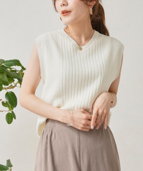 ベーシックなデザインで絶対使える! ランダムなリブのフレンチスリーブニット ■point ・フロント部分は太め、サイドに向かって細めのリブデザイン ・バックデザインは細リブ仕様となっています。 ・ランダムなリブデザインがコーディネートのアクセントに ・ノースリーブに近いフレンチスリーブ ・ゆるめのVネックですっきりとした印象に ・タイト過ぎないサイズ感で体のラインを拾わないデザイン ・ベーシックアイテムなので、着回し力抜群! ・オンオフ問わず着られるカラー2色と柄展開 ■シリーズ品番 PGC1021405A0004 ドットJQノースリ切替プルオーバー ■coordinate 着回し力の高いベーシックなアイテムなので、インナー使いとしてもメイン使いとしても活躍します。 サロペットやキャミワンピースのインナーとしてはもちろん、パンツやフレアスカートと合わせてジャケットを羽織ったコーディネートもオススメ! (PGC1021407A0001 袖ボリュームシアーブルゾン)を羽織ったスタイルは今年らしさも出していただけます。 -------------------------------------------------- 透け感:なし 裏地:なし 伸縮性:あり 生地の厚さ:普通 季節:春.夏.秋 洗濯方法:手洗い可 -------------------------------------------------- ※商品画像は着用イメージです。 光や角度により、実物と色味が異なる場合がございます。また表示のサイズ感も実物とは若干異なる場合もございますので、ご了承ください。 ※着用、お取り扱いの際は、商品についている品質表示とアテンションタグを必ずご確認ください。 -------------------------------------------------- ♡をクリックでお得な情報をお知らせいたします。 <商品お気に入り登録> お気に入りアイテムのお値下げ・再入荷・在庫ラスト1点など通知を受けることができます。 <ブランドお気に入り登録> Chez toiの新商品・再入荷・SALE・クーポン配布などお得な情報を受けることができます。 -------------------------------------------------- リラックススタイル/ストレスフリー/オンオフ/ベーシック/デイリー/体型カバー/大人カジュアル/ママコーデ/ お出かけスタイル/細見え/抜け感/キレイめ/リブニット/着痩せ/フレンチスリーブ/ノースリニット/低身長/華奢見え/シンプル/お仕事コーデ/ママファッション/着映え/女子会/着映えトップス/フレンチカジュアル/二次会/女子会/パーティー/オフィスカジュアル/食事会/フォーマル/発表会/顔合わせ/フェミニントップス/ランダムリブ/ベーシックトップス/オフィスカジュアル