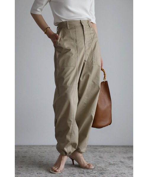今季らしいトレンド感が詰まったベイカーパンツ 《スタイリング》 ボリューム感のあるストレートベイカーパンツにはすっきりとしたサイズ感のトップスやシンプルなTシャツをインするスタイリングがオススメ。 裾を絞らず着るとカジュアル過ぎず綺麗めにも着回していただけます。 裾を絞って着るとぐっとこなれ感漂うスタイリングに◎ 《ディテール》 カジュアル要素が強いベイカーパンツですが、ストレートのシルエットで大人らしく落ち着いた雰囲気で着用いただけます。 お好みで裾を絞ってカジュアルに今季らしいディテールも楽しんでいただけます。 ポケット付きも嬉しいポイント。 《ファブリック》 着心地の良いコットン100% ------------------------ 透け感/オフホワイトのみ若干あり 光沢感/なし 伸縮性/なし 裏地/なし 厚み/普通 ------------------------ ミリタリーテイスト/夏服 【Information】 ◆《お気に入り登録》がオススメ◆ ・「商品のお気に入り登録」で再入荷通知や、ラストの通知、セール通知も受け取ることが出来ます。 ・「ブランドのお気に入り登録」で新商品や再入荷など、お得な情報を受け取ることが出来ます。 ※撮影時のライティング、ご覧になっているモニター・PC環境により、実際の商品と色味が異なって見える場合がございます。予めご了承をお願い致します。 ※モデル着用画像は実際の色と多少異なる場合がございますのでトルソー画像をご確認ください。