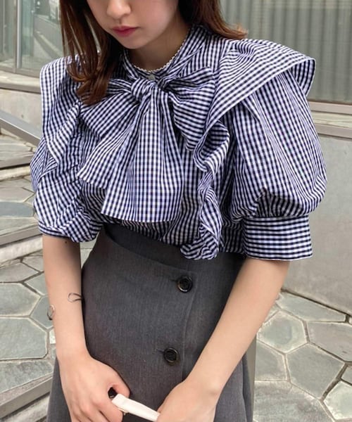 NICECLAUP 2022 early summer Collection 大人気のビック大きなリボンに半そでバージョン登場!フロントの大きなリボンがポイントのブラウス。肩にも大きめなフリルをあしらい華やかな印象に仕上げました。少し張り感のある素材は立体感を際立たせます。コットン素材のブラウスなので、可愛さあるコーデももちろんオススメですがカジュアルなボトムや小物をミックスして着るのもオススメです。■オススメコーディネートボリューム感のあるトップスなので、ボトムはコンパクトなものを選ぶのが◎。甘めさんならミニボトムと、カジュアルさんならデニム合わせがオススメ。あえてスニーカーやスラックスなどと合わせてもこなれた印象になります。-------------裏地:無し伸縮性:無し生地の厚さ:普通生地の重さ:普通-------------※サンプルでの撮影のため、実際のものと仕様や色が異なる場合があります。※室内、室外での撮影のため実際より明るく映っていたり、暗く映っていたりする場合がございます。※品質表示を必ずご確認下さい。nice0508