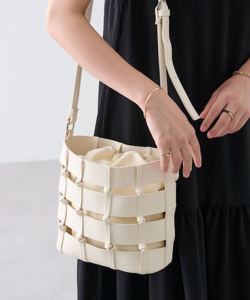 【メッシュデザインの夏らしいバケツバッグ】暑くなるこれからの時期におすすめなメッシュのバケツ型ショルダーバッグ。自立するしっかりとした素材感のフェイクレザーがカジュアルになりすぎないので、トレンドのジレなどきれいめなコーディネートともよく合います。間の結びデザインもさり気なくデザインのポイントになっています。夏らしいメッシュながらも穴が大きすぎず、中が見えにくいので巾着なしでお使いいただくのも◎ハリがあるキャンバス地の巾着は別々に使うこともでき、お持ちのポーチやバッグと組み合わせるのもまた違う雰囲気になっておすすめ。■サイズ巾着:高さ23 幅16 マチ9■素材本体: 合成皮革, 別府部分: 綿100%※着用、お取り扱いの際は、商品についている品質表示とアテンションタグを必ずご確認下さい。※商品タグに記載されている商品名がWEBでの表記名と異なる場合があります。※画像の商品はサンプルです。実際の商品と仕様、加工、サイズが若干異なる場合がございます。 ※照明の関係により、実際よりもやや明るく見える場合がございます。またパソコンなどの環境により、若干製品と画像のカラーが異なる場合もございます。予めご了承くださいませ。 【お気に入り登録】してお得な情報をCHECK!!・「商品のお気に入り登録」で再入荷通知や、ラストの通知、セール通知も受け取ることができます。・「ブランドのお気に入り登録」で新商品や再入荷など、お得な情報を受け取ることができます。womensbagandwalletbagandwallet