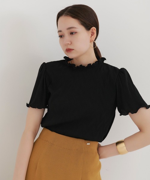 落ち感のある楊柳生地を使用した、程よいシアー感がシーズンライクなトップス。 程良いパワーショルダーとギャザーを施した衿、袖口が甘すぎないフェミニンさを演出。 華奢なバックリボンが後ろ姿まで印象的に見せるデザインです。 p o i n t ・肌に密着しにくく、着心地が良い、落ち感のある楊柳生地を使用 ・後ろは涙開きデザインで抜け感のあるバックスタイルに 【お取り扱い上の御注意】 <お届け時のシワにつきまして> ページで着用している商品は撮影前に全てプレスをかけております。 その為お送りする商品は畳みジワや細かいシワがついている場合がございます。 ご了承くださいませ。 <色移り・色落ちについてのご注意点> この商品は摩擦(特に湿った状態での摩擦)や汗や雨などでぬれた時は他の衣料や下着に色が移る事がありますので、十分ご注意ください。 <お取り扱いご注意点> ・あて布使用 ・ネット使用 ・蛍光増白剤使用禁止 ・単独で洗濯してください。 ・もみ洗い禁止 ・つけ置きや濡れたままの放置禁止 ・水洗いすると多少縮むため、干す前には形を整えてください。 ・濃色は強く摩擦されると色が移る場合があります。 ・熱で加工したプリーツ製品です。プレスや乾燥機等の熱で加工が取れることがあります。自重伸びや外観変化を防ぐため、ハンガー等で吊り下げての保管はさけ軽く折りたたんだ状態で圧力が加わらないように保管してください。 ・先の尖ったものやざらついたものに引っ掛けた場合、糸が飛び出すことがあります。アクセサリー、ベルト、バッグ等には十分ご注意ください。 こちらの商品画像は、スタイリングの雰囲気に合わせて撮影方法を変えた関係で、カットにより光の当たり具合が変わり、色味が異なって見えます。 現物のカラーは、商品画像最後の画像でご確認くださいませ。