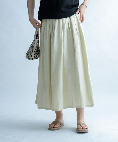 リネンとセルロースを掛け合わせた素材を使用したスカートが登場。素材特有の清涼感漂う風合いを活かしつつ、適度にとろみを持たせることで美しい落ち感を生み出し、夏に快適な穿き心地が実現します。ボリュームを持たせつつもトップスをインしてもすっきり見えが叶う計算されたウエスト部分に設定。身長問わずに着られるミディ丈、2サイズ展開でご用意しました。【FORK&SPOON(フォークアンドスプーン)】DOORSのプライベートレーベル。その名前のとおり「毎日食事を摂るように、毎日大切に着てほしい」という思いが込められています。毎日着たくなる様な心地のよいベーシックスタイルは、世代を超えてお楽しみいただけます。※この商品は、NATURALのみペチコートがつきます。予めご了承ください。[ペチコート]1 : ウエスト66~82cm / ヒップ約98cm / スカート丈70cm / スリット18.5cm2 : ウエスト66~82cm / ヒップ約98cm / スカート丈70.5cm / スリット18.5cm-----------------------------《スタッフ着用コメント》[スタッフA]年齢 : 30代前半, 身長 : 155cm, 体型 : 普通普段の着用サイズ : 36【着用サイズ】1【サイズ感】ウエストはオールゴム仕様で調節のできる紐が内側についているため、イン・アウトどちらのスタイルでもちょうどよいサイズへ調整ができました。スカート丈は155cmでふくらはぎがしっかり隠れ、足首が見える丈感でした。【素材感, 着心地】分厚すぎない生地感で夏も快適に過ごせそうでした。麻特有のチクチク感は感じず少しとろみのある肌触りで着心地がよかったです。-----------------------------※商品画像は、光の当たり具合やパソコンなどの閲覧環境により、実際の色味と異なって見える場合がございます。予めご了承ください。※商品の色味の目安は、商品単体の画像をご参照ください。▼お気に入り登録のおすすめ▼お気に入り登録商品は、マイページにて現在の価格情報や在庫状況の確認が可能です。お買い物リストの管理に是非ご利用下さい。-----------------------------透け感:なし伸縮性:なし裏地:なし光沢:なしポケット:あり-----------------------------