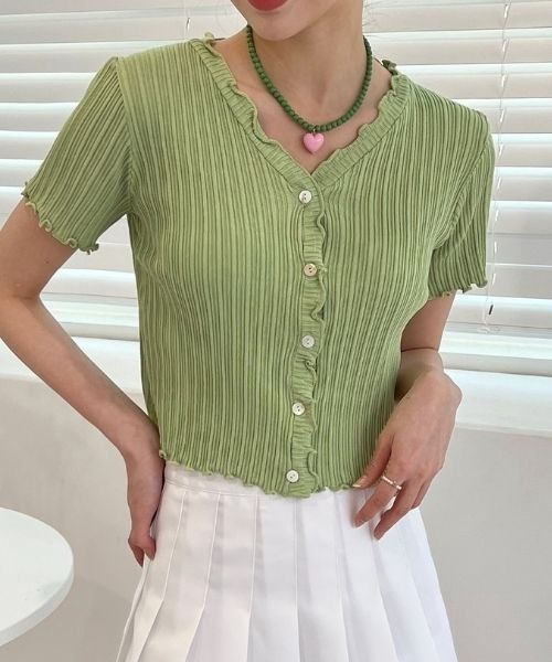 by muni:rベストセラーアイテム♡ 【ウェーブリブ半袖カーディガン】 気軽に着用できるウェーブ半袖カーディガンを紹介します。 ▼ポイント - トレンドのクロップド丈 - ビビッドカラー - リブ素材 ▼ディテール ボタンを開けるとニットのような感覚で着用することができます! 閉めるとカーディガンのように着用することが可能♡ 伸縮性の良いリブ素材で動きやすく着心地も快適!! どなたでも楽に可愛く着まわすことができます。 首元と袖、裾のウェーブライン仕様が より女性らしく見せてくれるおすすめのアイテムです♥ ▼おすすめコーデ スラックスやデニム、スカートなど何にでも合わせやすいです。 豊富なカラー展開で、カラーごとに雰囲気が異なるので さまさまなコーディネートを楽しむことができます:) *ご覧のモニター環境や撮影環境に応じて実際の 商品の色と異なって見える場合がございます。ご了承ください。 *素材の特性を考慮して管理法留意事項を購入/着用する場合は必ずご確認をお願いします。 サイズ感:普通 伸縮性:普通 肌触り:普通 厚み:普通 透け感:明るい色のみあり ★商品お気に入り登録 [お気に入り登録] を押すと登録完了! お好きなアイテムとサイズのカラーを登録すると再入荷、販売のお知らせ等を受け取れます。 ★ブランドお気に入り登録 新商品、お買い得情報、クーポンなどをできるだけ早く通知を受け取れます。 - ブランドの最新情報はinstagram【@by__munir】でご確認いただけます! * 注文履歴ページよりご注文いただいた商品の配送時間を確認できます。 * 他のキャンペーンにより、価格が変わる場合があります。 * 販売は予告なく終了することがあります。 韓国トレンド / 韓国ブランド / 韓国ファッション / 韓国カジュアル / 韓国コーデ / 韓国アイテム