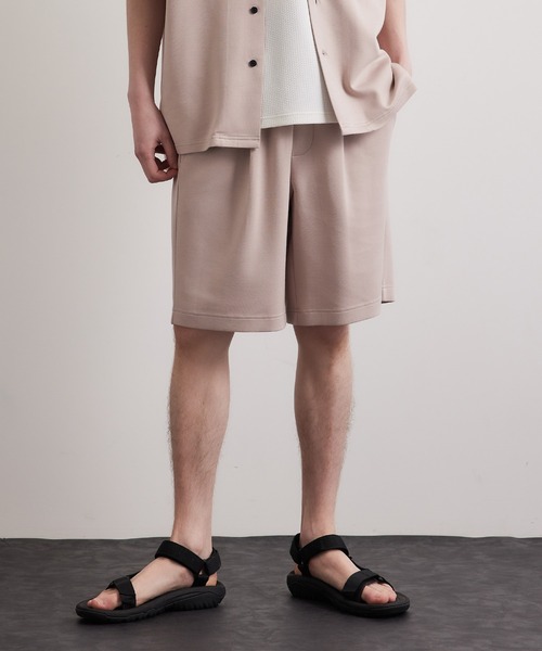 【最上級の着心地】エアシルケットショートパンツ■素材、機能滑らかで肌当たりが良く最高の着心地を提供してくれる多機能素材です。接触冷感、しっとりタッチ、ストレッチ性を持たせ動きの邪魔にならず快適に過ごせます。■シルエット、デザイン落ち間と上品なドレープ感がありリラックスして着用できるショートパンツです。股下をやや長めにしワンタックを入れることでルーズでラフな印象を演出しています。ウエスト部分がゴム仕様になっているため、ストレスなく動きやすく、着脱しやすいアイテムです。■カラー落ち着いたカラーでセットアップ着用でも様になる3色展開です。■スタイリング同素材のシャツ、Tシャツ、カーディガンと合わせたSETUPがおすすめです。また単品でもルーズなTシャツと合わせ、サンダルと組み合わせた夏仕様も完璧に決まります。裏地:なし透け感:なし伸縮性:あり生地感・厚さ:普通ポケット:ありその他仕様:ウエストゴム、内側に調節紐あり【モデル着用サイズ】MEN:身長177cm 着用サイズL※撮影場所やライティング、お使いのモニター環境によって色の見え方が異なる場合がございます。※画像の商品はサンプルです。 実際の商品と仕様、加工、サイズが異なる場合がございます。