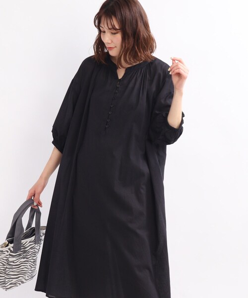 【デザイン】 インド原産の綿を使用したエアリーで夏らしいカフタンワンピース。 ゆったりとしたシルエットに、胸元のボタンがポイントを効かせたシンプルなデザインで着回しやすく、この夏大活躍すること間違いなし! サンダルを合わせて爽やかなリラックスコーデがおすすめです。 ※ポケットなし 【生地感】 インド綿ならではの柔らかいタッチと、鮮やかな発色が特徴的です。 軽く、ふんわりと女性らしい素材感。 ※こちらの商品は透け感があるため、インナーの着用をおすすめします。 ※裏地なし モデル情報:身長167cm B78 W62 H88 着用サイズ:00(FREE) 店舗へのお問い合わせ商品番号:C62-54046 ●製品寸法: 00(FREE):着丈110cm B118cm 袖丈30cm 肩幅56cm 備考: