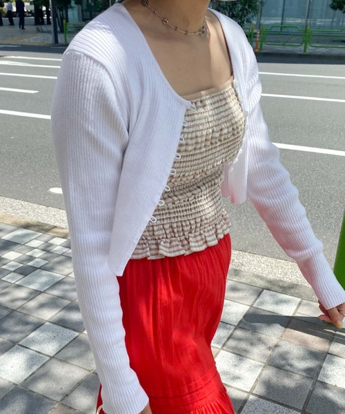 ■一枚で主役になるインナー■ギンガムチェックが爽やかなインナー。オレンジやグリーンなど今年トレンドのカラーが揃っているので、取り入れるだけでオシャレ度が上がるアイテム◎シャーリングが入っているのでスッキリと見せてくれるのも嬉しいポイント。裾はフリルになっているので、シンプルなカーディガンやデニムとの相性も抜群です◎ーーーーーーーーーーーーーーー透け感:なし裏地:あり伸縮性:あり光沢感:なし生地厚さ:普通※詳しいお手入れ方法は商品についているタグをご覧くださいーーーーーーーーーーーーーーー※ご利用のモニター環境により、実際の色味と多少異なる場合がございます。… information … 欲しいitemをお気に入り登録(♡マークをclick) ・お買いのがし対策…完売itemの再入荷やラスト1点の情報をお知らせ ・欲しいitemをお得にget…price downになったらいち早くお知らせ ・スムーズ検索…ZOZOのお気に入りアイテムページで簡単checkできるから、再検索不要♪