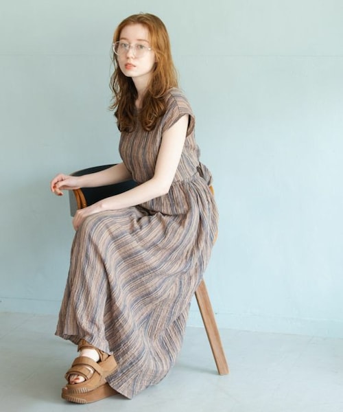 ナチュラルな風合い漂うバックシャンワンピース。 落ち着いた配色のストライプ柄が大人っぽくシーズンムード高まる1枚です。 バックリボンデザインが女性らしく後ろ姿まで抜かりなく演出してくれます。 背中が大きく開いたシルエットで抜け感をプラス。 インナーにTシャツを合わせたスタイリングはもちろん、 夏場はタンクトップやキャミソールを合わせてヘルシーに着ていただくのもおすすめです。 ウエストは一周ゴム仕様でストレスフリーな着心地が叶います。 ポケット付きで実用性があるのも嬉しいポイント◎ 肌触りの良いコットン100%。 柔らかくシボ感のある生地で暑い時期でも快適に着ていただけます。