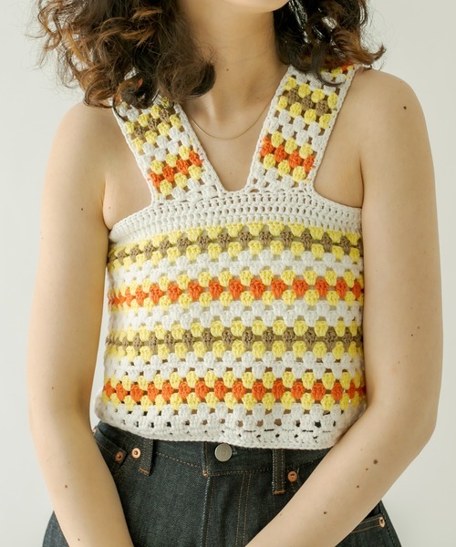 1枚でもレイヤード使いでも決まるマストバイアイテム!!商品ポイント・かぎ針デザインが目を惹く夏らしいビスチェ。・それぞれの配色がスタイリングの主役に決まります。・前後両前でお使い頂けるのも嬉しいポイント◎スタイリングポイント・パット付きキャミソールの上に着用し1枚ですっきり着るのがオススメ◎・肌見せが苦手な方はTシャツなどにレイヤードして頂くのも。シンプルなデニムやスラックスワイドパンツとの相性抜群!------------------------------------------------------裏地:なし伸縮性:あり光沢感:なし生地の厚さ:ふつう------------------------------------------------------------------------------------------------------------商品のお気に入り登録➡ お気に入りアイテムの値下げ・再入荷・在庫1点などの通知を受け取ることができます。ブランドのお気に入り登録➡ 新商品や再入荷、セール、クーポン配布などお得な情報を受け取ることができます。※サイト上のカラー名と、お届け商品に記載されているカラー名が異なる場合がございます。※商品の色味は、撮影場所や光のあたり具合などにより色味が違って見える場合が御座います 。また、お客様のお使いのPCのモニター環境などにより色味が違って見える場合が御座います。予めご了承の上ご注文下さい。※ご注文いただいた予約商品のお届け時期の確認は、注文履歴ページより行えます。------------------------------------------------------