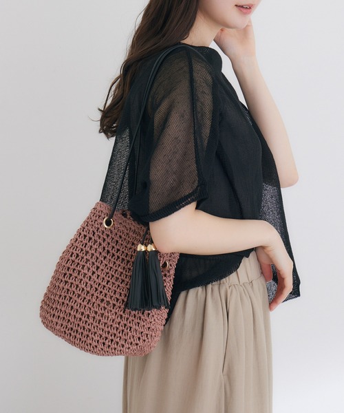 【KATHARINE ROSSセレクト】ころんとした巾着風デザインが可愛い! 軽やかなペーパー素材の春夏らしいカゴバッグ。 貴重品をいれてお出かけできる、コンパクトなサイズ感が可愛い! ストラップの出し方でショルダー使いも可能です。 〈ポケット〉 インナーオープンポケット1つ 〈取り出し口〉 マグネットボタン