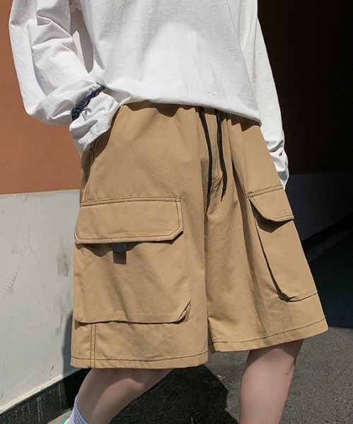 カーゴパンツ×ハーフパンツでトレンドで履きやすい1着!●DesignBLACK・BEIGEの2色カラー展開!使い勝手のいいベージュからなんでも合うブラックまで捨て色がないカラバリ!フロント部分にポケットが付いている個性的なデザインで周りと被らないデザイン!ポケットも大きめなので財布やスマホなどちょっとした小物が入るのが嬉しいポイント!ウエストもゴムなので脱ぎ着がラクチンでベルトいらずのアイテムとなっております。ハーフパンツなので春から秋まで着用でき、トップス次第で様々なコーデが完成します。カジュアルなパンツなのでお出かけやピクニックなどにもってこいのアイテムです。彼氏や家族などにちょっとしたプレゼントにもおすすめです。●Stylingシンプルなパンツなのでトップスや小物で幅広いコーデが完成します。定番のTシャツやロンTはもちろん、ビックシルエットシャツでストリートコーデにしたり、ジャケットやベスト、ジレ、足元にはローファーやブーツなどでキレイめコーデ、タンクトップに半袖シャツ、リンガーTやバスクシャツなどと合わせても◎肌寒い時期にはカーディガンやニット、スウェットやパーカーなどを合わせても◎小物にシルバーアクセやパールのネックレス、リングなどを合わせたり、キャップやバケハ、ニット帽、ハンチング帽などを被っても◎シューズにスニーカーはもちろんサイドゴアブーツやサンダルなど合わせても◎韓国ファッション好きな方はぜひ!!こちらの商品はセレクト・インポートアイテムのためサイズ感が日本規格のものとは異なります。お買い上げの際にはサイズチャートでご確認頂きますようお願いいたします。【お買い物をよりお楽しみいただくために】●商品のお気に入り登録(ハートマークをクリック)完売カラーの再入荷や、ラスト1点のお知らせ、セール情報などの通知を受け取ることができます。●ブランドのお気に入り登録新商品や再入荷など、お得な情報をいち早く受け取ることができます。●最短で翌日お届け商品をカートに入れた後、注文内容の確認ページで「即日配送」を選択していただければ、最短でご注文した翌日にお届け致します。是非ご利用頂き、お買い物をお楽しみください。
