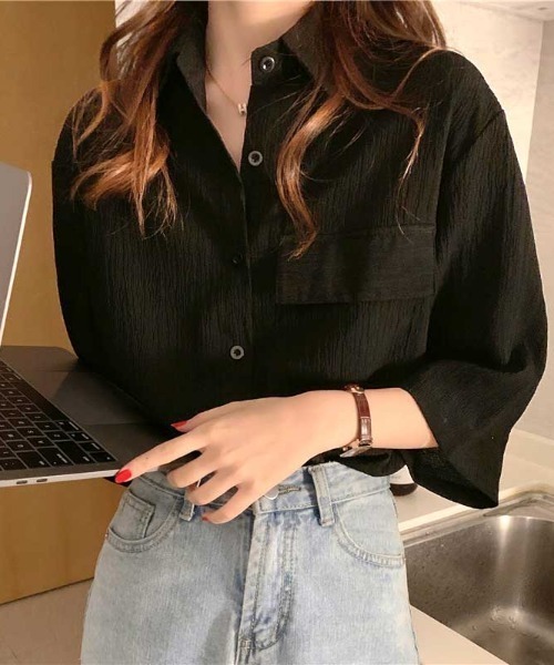●Pointしわ感がポイントのワッシャーデザインのシャツが登場! ルーズなシルエットで、デザインとの絶妙なバランスが◎ シャツできれいさもありつつ、ワッシャーデザインでフェミニンさと、 ゆったりしたサイズ感でカジュアルさもある、バランスが抜群のアイテムです。 シャツにありがちな窮屈感もなく、着心地もよくストレスフリー◎ ポケットもついており、機能面も◎ 透け感もあり、涼し気なデザインも嬉しいポイントです。 ●Styling デニムと合わせてシンプルなカジュアルスタイルや、 ルーズシルエットなスラックスに合わせてオフィスカジュアルがおすすめです。 カラーパンツで、遊び心&季節感のあるスタイルも◎ ハーフパンツとの合わせで、洗練された大人スタイルも◎ タイトスカート・フレアスカート・ミニスカートで女性らしさをプラスしても◎ ハーフパンツにフラットミュールですっきりと落ち着いたスタイルも! シルバーアクセサリーやキャップなどの小物類との相性も抜群です。 韓国ファッションが好きな方は、必見です。 こちらの商品はセレクト・インポートアイテムのためサイズ感が日本規格のものとは異なります。 お買い上げの際にはサイズチャートでご確認頂きますようお願いいたします。 【お買い物をよりお楽しみいただくために】 ●商品のお気に入り登録(ハートマークをクリック) 完売カラーの再入荷や、ラスト1点のお知らせ、セール情報などの通知を受け取ることができます。 ●ブランドのお気に入り登録 新商品や再入荷など、お得な情報をいち早く受け取ることができます。 ●最短で翌日お届け 商品をカートに入れた後、注文内容の確認ページで「即日配送」を選択していただければ、最短でご注文した翌日にお届け致します。 是非ご利用頂き、お買い物をお楽しみください。