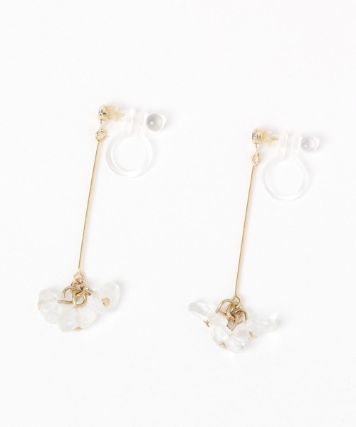耳元でさりげなくゆれるおしゃれアイテム【デザイン】樹脂ノンホールイヤリングを使用。樹脂なので、肌に優しい素材。天然ストーンのサザレはそれぞれ違う形なので角度によって見え方が変わります。全体は華奢でシャランとした大人っぽいデザインです。つけるとゆらゆらしてかわいいです。【お買い物が便利になる機能がたくさん!】 ▼商品のお気に入り登録▼ 完売アイテムの再入荷通知、ラスト1点、またクーポンやお値下げ通知をお知らせします。 ▼ブランドのお気に入り登録▼ 新商品や再入荷のお知らせ等、いち早くブランドのお得な情報を受け取ることができます。 ぜひご登録ください。