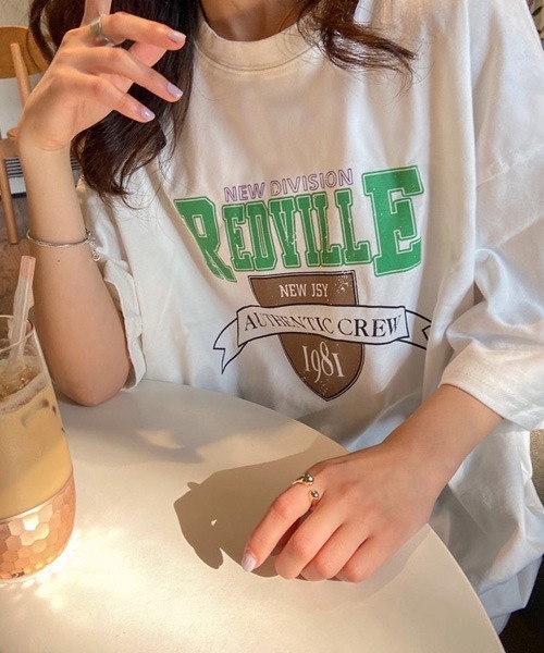 【 BASQUE -enthusiastic design- 】REDVILLE LOGO CREW NECK T-SHIRTS /ビッグシルエット カレッジロゴ 半袖Tシャツ大人カジュアルに使いやすい、洗練されたデザイン!!!■コーディネートの主役になるロゴデザイン。この夏のトレンド間違いなしの古着のようなヴィンテージ感のあるロゴプリントがコーデのスパイスになるアイテム!!フロントにインパクトのあるアメカジ風のプリントを施しており、今年らしいルーズなシルエットになっております。ゆったりとしたオーバーサイズなのでユニセックスとして女性の方にもオススメです!ストリートテイストやアメカジテイストにもハマるユーズドライクな雰囲気に。トレンドシアーシャツを上に羽織って、フロントからロゴをチラ見せすることでこなれた雰囲気に。デニムなどのシンプルなボトムに合わせても一気にトレンドスタイルに◎■大きめのサイズがコーデに取り入れやすい。ビッグシエルエットになっているので、ワイドパンツからスキニーパンツまで何にでも合わせやすいです。ドロップショルダーになっているので、ラフな雰囲気に着こなせます。女性にはメンズライクな着こなしやシミラールックとしてもコーデの力を発揮するアイテムです。■肌馴染みが良くノンストレスな着心地。通気性がよく、肌触りもやわらかなTC(ポリエステル・コットン混紡)の生地。やわらかな風合いと伸縮性で気持ちよく着用できます。「BASQUE magenta/バスクマゼンタ」これからの多様化するファッションに、ユニークな世界観で感性を刺激する。 シティーカルチャーを現代に合わせて独自にミックスした、トーキョー発のコンテンポラリーブランド。