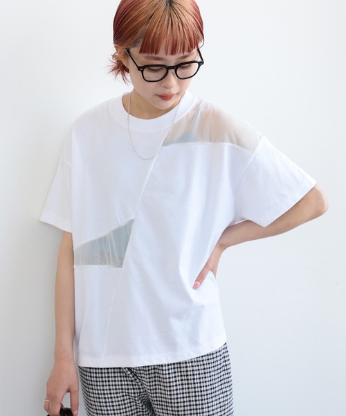 こだわりの詰まったデザイン 透け感の少ないコットン素材の天竺をボディに使用し、相反するシアー素材を部分的に切り替えたデザインTシャツ。インナーに入れるカラーや柄で様々な表情を楽しんでいただけるひと品です。 ゆったりとしたサイズ感もポイント。シーズンムードを盛り上げてくれるひと品です。 【WHITE】BEAMS STAFF:H152 (cm) Size:FREE 【BLACK】BEAMS STAFF:H161 (cm) Size:FREE