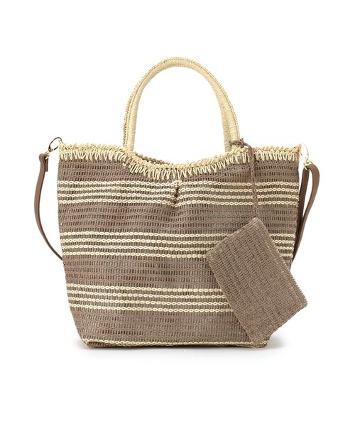 【デザイン】ペーパー素材をざっくりと編み上げたナチュラルな雰囲気のトートバッグ。ボーダー柄がアクセントになった夏のスタイリングにぴったりのアイテム。同素材のポーチ付きも嬉しいポイントです。取り外し可能なショルダー付きで、気分に合わせて持ち方を変えられます。※ポケット数:内側×1※ポーチ付き店舗へのお問い合わせ商品番号:C70-04403●製品寸法:00:高さ26cm 幅(上部)35cm 幅(下部)25.5cm マチ13cm 持ち手上がり15cm 付属ショルダー対応サイズ64~118cm 付属ポーチ全長28cm 付属ポーチH10cm 付属ポーチW15cm 付属ポーチD1cm備考:重量:約310g