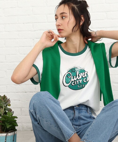 【デザイン】プチプライスのTシャツシリーズ!リンガーデザインが個性的でトレンドライクな1枚。パイピングの配色とプリントカラーが同じなので、子供っぽくなりすぎずません。カジュアルさが強いアイテムなのでスタイリングはキレイめを意識するのがおすすめ◎お手頃プライスなのでプリント違いで何枚持っていても良いアイテムです!【生地感】やわらかな肌触りと扱いやすさが魅力のコットン(綿)混素材を使用しています。※こちらの商品はやや透け感があるため、インナーの着用をおすすめします。モデル情報:身長168cm B76 W58 H86 着用サイズ:02(M)店舗へのお問い合わせ商品番号:C62-14108●製品寸法:01(S):着丈52cm B92cm 袖丈18cm 肩幅36cm02(M):着丈53cm B96cm 袖丈19cm 肩幅37cm03(L):着丈55cm B100cm 袖丈19cm 肩幅39cm備考: