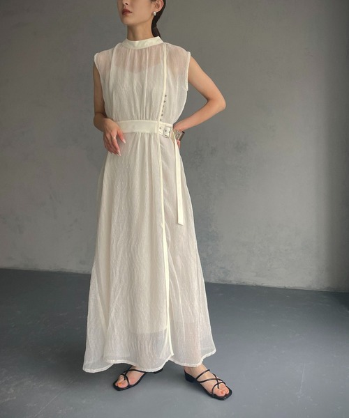 独特な風合いが涼し気なシアーワンピース 楊柳の表面感が特徴の生地でシアーとしゃり感の風合いあるワンピースです。 シルバーボタンとベルトを設置し、&g'aimeらしいアクセントに。 インナーキャミソールがついているので1枚でスタイリングが完成します。 軽くて清涼感のあるさらっとした着心地で夏にピッタリな一枚に仕上げました。 ------------------------------------------------------ 透け感/あり 伸縮性/多少あり 裏 地/なし(インナー付属) 厚 み/薄手 ------------------------------------------------------ 【お買い物を楽しんで頂く為に】 ■商品のお気に入り登録 お気に入りの登録をして頂きますと 完売カラーの再入荷通知や、ラスト1点の通知を受け取ることができます。 ■ブランドのお気に入り登録 新商品の発売や再入荷、タイムセールやクーポン発行のお知らせなど &g'aimeがお届けするお得な情報を受け取ることができます。