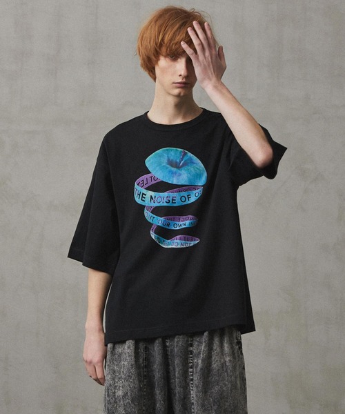 胸元のプリントがアクセントのBIG-Tシャツ。 度詰めで編まれた60/2天竺は型崩れしにくく、縮みにくいのが特徴。 model: H186 B88 W73 着用サイズ:2:2