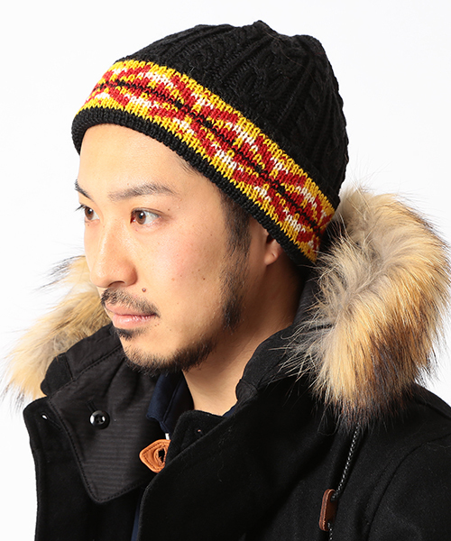 デザインの切り返しが印象的なニット帽 折り返しの部分をフェアイル柄にする事でカジュアルな印象に仕上がった。 店舗へお問い合わせの際は下記品番をお伝えください。 品番:11-41-2227-629