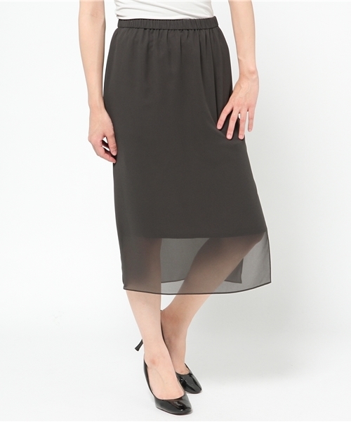 エアリーなシフォンで仕立てたスカート。インナーとの差を付けた遊び心あるデザインでシフォンからのぞく膝がエレガントなレッグラインを演出。きちんとした印象だからオフィスシーンにも対応可。
