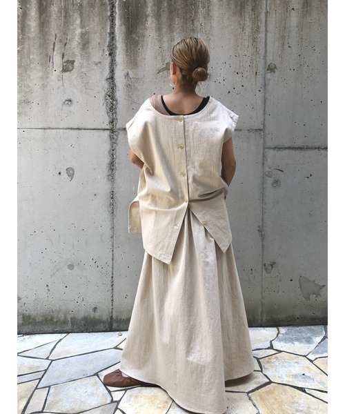 ulu original リネンの風合いが素敵なoriginalリネンコットンベスト。 くったりと柔らかい生地感が魅力のリネンデニム生地ベスト。 前後2wayでお使いいただけて、羽織としても可愛いくコーデの幅も広がります。 ゆったりとしたシルエットで、おそろいのスカートや、パンツとセットアップとして着用もしていただけます。ルーズなシルエットが可愛く、ゆったりとセットアップでの着用もおすすめですが、ジレのように羽織として、ベストとして、単品でも可愛く着用していただけます。 夏にぴったりな2colorでの展開です。 denimはカジュアルな雰囲気で春夏にぴったりです。