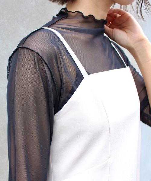 2022 SS 春夏 トレンドアイテム WEB限定 【大人気のチュールシアーのトップスが5分袖で登場】 トレンドライクなスタイルには必須なアイテム◎ ▼Design ・五分袖の丈感が季節感をグッとアップさせてくれます。 ・品のある透け感がコーディネートに抜け感をプラスしてくれます。 ・程よくピタッとフィットするサイズ感が◎ ・夏場のレイヤードスタイルのバリエーションをグッと広げてくれます。 ・首元、袖元のメロウカットがフェミニンな印象を演出してくれます。 ▼Fabric ・伸縮性もしっかりとしているので着心地も楽ちん◎ ・通気性も抜群なので気温の高い日でも着用可能です。 ・気品ある女性らしさを演出してくれるテロンとした素材感。 ・サラッとした素材感が快適な着心地に。 ▼Styling ・タンクトップやキャミソールを差し込めば、トップスとしても◎ ・ワンピースやサロペット、ジャンスカのインナーとしても◎ ・シンプルにTシャツに合わせるのもラフで抜け感あるスタイルに。 ・首元や袖口のメロウカットがこなれ感をアップします◎ ・フレッシュなカラーを揃えているので、旬度高い仕上がりになります。 ・シーズンレスで着回し可能なのでスタイリングの幅がグッと広がります。 ----------------------------------------- 【以下グリーン参考。カラーにより多少の誤差あり】 ・透け感:あり ・伸縮性:あり ・生地の厚さ:薄い ・裏地:なし ----------------------------------------- 【スタッフ着用コメント】 身長159cm 5分袖の丈感が可愛いく、トレンド感もグッと高まります。 袖元首元に施されたメロウカットがポイント。コーデにさり気ない可愛いらしさをプラスしてくれます。 軽い羽織りものとの相性良く、ジレやカーディガン、ワンピースやサロペットと合わせても雰囲気高まる仕上がりになります。 レイヤードスタイルはもちろん、タンクトップやキャミソールを差し込めばトップスとしても着れるのでコーディネートの幅が広がる事間違いなしです。 春夏の気温の高い季節にはメインアイテムとして、秋冬にはインナーとしてレイヤードの着こなしで。シーズン問わず着回しが可能なのはとても魅力的でした。 これからの季節に人気なシアー素材のアイテムは持っておくと重宝出来る事間違い無しなので、おススメのアイテムです◎
