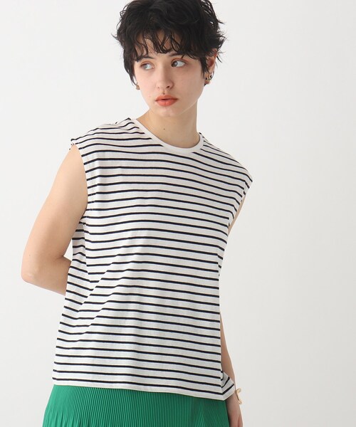 やわらかく表情のある素材感と、シルエットに徹底してこだわったBASIC Tシャツ【素材】サスティナブルなオーガニックコットンを100%使用しています。極細番手のコットン(綿)を使用し、糸に強く撚りをかけることでドライなタッチとナチュラルなニュアンスを表現。さらに双糸使いの天竺編みにすることで、柔らかさがありながらほどよい肉感を出しています。【デザイン】素材感を活かしたベーシックなノースリーブTシャツ。ほどよくコンパクトなシルエットで、一枚でもインナーにも使いやすいバランスに仕上げています。身幅~裾幅をストレートに落としたすっきりとしたシルエットに、やや長めの袖丈で大人っぽく着用が可能です。腕が出すぎない絶妙なバランスの肩幅にもこだわっています。キレイめなボトムに合わせても、カジュアルな着こなしにも合わせやすい一枚。※ホワイト(002)ホワイト(302)はやや透け感があるため、インナーの着用をおすすめします。【オーガニックコットン】オーガニックコットンとは、オーガニック農産物等の生産方法についての基準に従い、2‐3年以上のオーガニック農産物等の生産の実践を経て、認証機関に認められた農地で農薬・肥料の基準を守り、更に栽培時に、社会的規範を守って作られた綿花のことです。※WEB限定サイズ:34(SS),42(LL)こちらの商品は主に夏に着用いただける商品です。モデル情報:身長165cm B84 W62 H89 着用サイズ:38(M)店舗へのお問い合わせ商品番号:637-14241●製品寸法:34(SS):着丈55cm B92cm 肩幅42cm36(S):着丈56cm B95cm 肩幅43cm38(M):着丈57cm B98cm 肩幅44cm40(L):着丈58cm B101cm 肩幅45cm42(LL):着丈58cm B104cm 肩幅47cm備考: