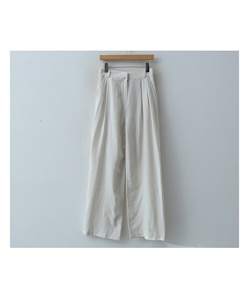 リネン混紡素材でこれからの季節に大活躍してくれるワイドスラックス。 バックゴム仕様にワイドなシルエットで楽ちんで快適に穿いて頂けます♪