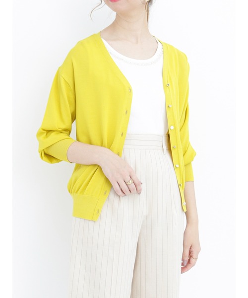 【Algan oil】Moisturizing materialTe chichiからアルガンオイル配合のモイスチャーシリーズが登場!夏の日差しを浴びるお肌をいたわる保湿効果の高いアルガンオイルを素材に配合し、しっとりとした滑らかな肌触りに仕上げました。……………………………………………………………ゴールド釦がリッチなアクセントに映えるカーディガン。Vネックデザインが女性らしい抜け感を演出。しっとりと滑らかなレーヨン混素材が上品な装いに◎シーンレスで幅広い活躍が期待できる万能アウターは、ワードローブに備えておくと重宝します。豊富なカラーバリエーションにも注目。★《お気に入り登録》でお得な情報をGET★① 商品ページ内のハートマークをクリック!② 以下通知が受け取れます!「再入荷」「ラスト1点」「特別セール」etc..\ブランド、ショップのお気に入りも是非!/