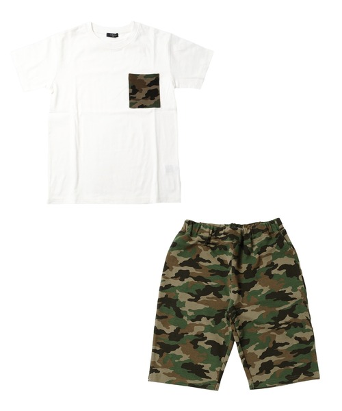 オーソドックスな天竺素材を使用したTシャツと、伸縮性抜群なスムース素材のパンツのセットアップアイテムです!体にストレスのかからない、程良くゆったりしたシルエットに仕上げました◎ポケット&パンツには共通した総柄を使用し、トレンド感のあるクールなデザインに!ルームウェアやパジャマとしてはもちろん、ワンマイル着としても活躍できる仕上がりです★『家の中でもラフにカッコいい』をイメージした、GLAZOSらしいセットアップ♪【ポケット】胸ポケット×1、ヒップポケット×1【モデル】身長145.5cm、体重38kg、着用サイズ:150cm■GLAZOSのお洋服は格好良いシルエットを目指し、一般的なお洋服より少し細身の作りにしております。実寸サイズをご確認の上、サイズをお選び下さいませ。