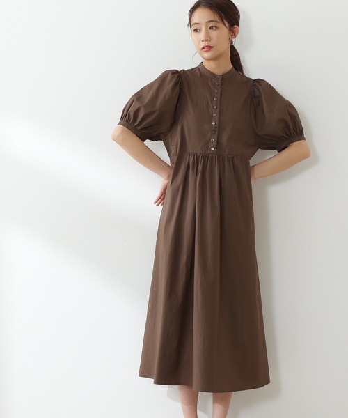 オトナ仕様のボリュームスリーブが愛らしいワンピース。コットン素材を使用、さらっと着やすい風合いです。前立てに配置した配色ボタンでデザイン性をプラスしています。二の腕が隠れるパフスリーブ、肌離れのよいシルエットでリラックスした着心地です。足もとはサンダルでフェミニンに、スニーカーでカジュアルダウンも楽しめます。※ペチコート付き